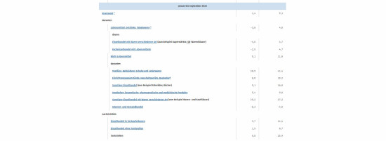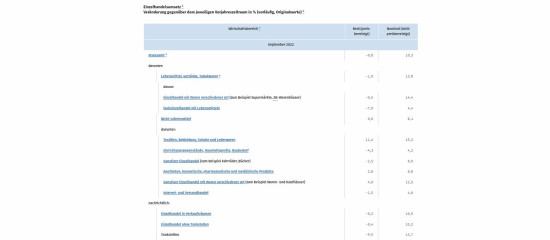 Der Einzelhandelsumsatz mit Einrichtungsgegenständen, Haushaltsgeräten und Baubedarf lag im September 2022 real 4,3 Prozent unter dem Vorjahresmonat, nominal war der Wert 4,2 Prozent höher. Von Januar bis September dieses Jahres lag der Realwert in diesem Segment um 8,6 Prozent über dem Wert im gleichen Vorjahreszeitraum, beim Nominalwert waren es 16,2 Prozent.