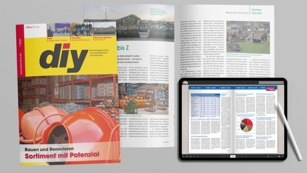 Ausbildungsplatz sucht Azubi heißt es im neuen Industrieteil des Hefts und im Messeteil berichten wir über die Messen Domotex und IPM sowie das Trio Ambiente, Christmasworld und Creativeworld. Im Gartenteil von diy 1/23 hat die Redaktion Deutschlands größtes Gartencenter in Hamburg unter die Lupe genommen und berichtet vom vergangenen IVG-Forum Gartenmarkt.