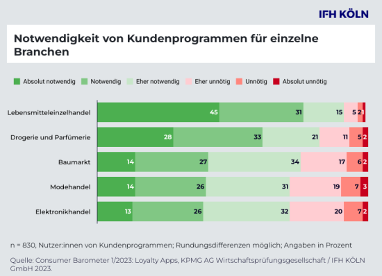 Spitzenreiter unter den Branchen mit den meisten Nutzern eigener Loyalty-Programme sind die Fast-Moving-Consumer-Goods-Branchen Lebensmittelhandel sowie Drogerie und Parfümerie. Über alle Branchen hinweg und bei Kunden mit verschiedenen Nutzungsfrequenzen stehen Vergünstigungen als wichtigstes Kriterium eines Kundenbindungsprogramms an erster Stelle. Jedoch gibt es auch Unterschiede zwischen den Branchen: Im Bereich der Gebrauchsgüter – hierzu zählen Baumärkte, aber auch die Branchen Fashion und Consumer Electronics – spielen Aspekte wie Kundenservice und Community im Gegensatz zum FMCG-Bereich eine wesentlich stärkere Rolle.