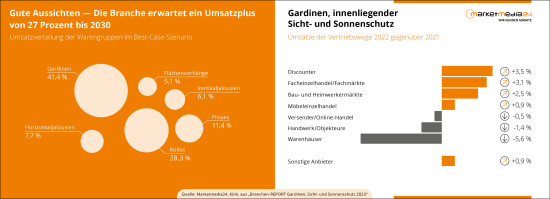 Gleichwohl gibt es positive Signale: So planen 41,9 Prozent der Konsumenten in der DACH-Region noch in diesem Jahr neue Anschaffungen für ihre Fenster – und knapp 20 Prozent in 2024. Parallel geht das Best-Case-Szenario der Kölner Marktforscher davon aus, dass die Handelsumsätze mit Gardinen beziehungsweise innenliegendem Sicht- und Sonnenschutz bis zum Jahr 2030 um 27 Prozent steigen werden.