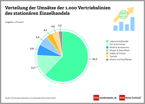 Die Top-1.000-Vertriebslinien im stationären Einzelhandel in Deutschland haben im vergangenen Jahr über 350 Mrd. Euro erwirtschaftet, wie das EHI Retail Institute in seinem aktuellen Ranking des Einzelhandels feststellt. Das sind 64 Prozent des Umsatzes des gesamten deutschen stationären Einzelhandels.