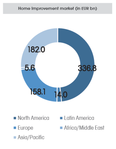 Unter dem Home-Improvement-Markt wurden für den neuen Report die Umsätze für Baumärkte, den Baustoffhandel und Einrichtungsmärkte (ohne klassischen Möbelhandel) zusammengefasst. Zusätzlich werden in den 61 untersuchten Ländern die Umsätze für den sogenannten DIY-Markt ausgewiesen, der den Umsatz der Baumärkte abdeckt. Erstmals enthält der neue Report eine auf Quellen basierende, marktbeschreibende Zahl für die Volksrepublik China.
