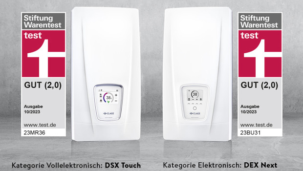 Die Stiftung Warentest hat in der Ausgabe 10/2023 Durchlauferhitzer getestet und Testsieger sind zwei Geräte von Clage. Im ersten großen Test seit 2014 wurden neun aktuelle Modelle von sechs großen Durchlauferhitzer-Herstellern miteinander verglichen. Testsieger in der Kategorie „Vollelektronische Durchlauferhitzer“ wurde der „DSX Touch“ von Clage. Der „DEX Next“ überzeugte in der Kategorie „Elektronische Durchlauferhitzer“ und wurde dort ebenfalls Testsieger, freut sich Clage. Beide Geräte erhielten mit der Note „Gut 2,0“ jeweils den Bestwert in ihrer Gruppe.