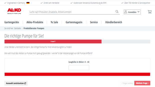 Al-Ko Gardentech bietet in seinem Webshop neben Neuprodukten ab der kommenden Gartensaison preisreduzierte Waren mit Gebrauchsspuren an, die technisch noch einwandfrei sind. Diese sind für den Kunden klar visuell abgegrenzt. Mit dem Re-Design des Webshops führt der Hersteller auch eine erleichterte Ersatzteil-Suche ein und stellt übersichtlichere, digital erzeugte Produktdatenblätter zur Verfügung. Außerdem gibt es in dem Shop für Geräte von Al-Ko und Solo by Al-ko ab dem kommenden Frühjahr eine Produktberater-Funktion. Ebenso wird der Kauf von Ersatzteilen im Webshop erleichtert, kündigt das Unternehmen an. Eine geführte Suche soll die Auffindbarkeit vereinfachen.