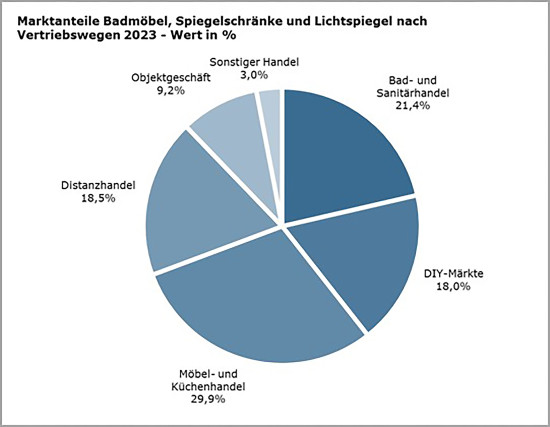 Aufgrund der Krisen von 2020 bis 2022 habe sich der Badmöbelmarkt in den zehn Ländern zwar unterschiedlich entwickelt, der Handel aber von starker Nachfrage profitiert. „Ebenso boomte bei Badmöbeln der wachsende Objektmarkt weltweit und die Endkunden profitieren von der vollständigen Preistransparenz der Produkte durch den kontinuierlich wachsenden Onlinehandel.“ 2022 wurden hier Badmöbel, Spiegelschränke und Lichtspiegel im Wert von 2,667 Mrd. Euro zu Herstellerabgabepreisen verkauft.