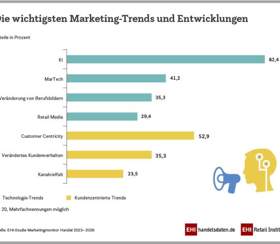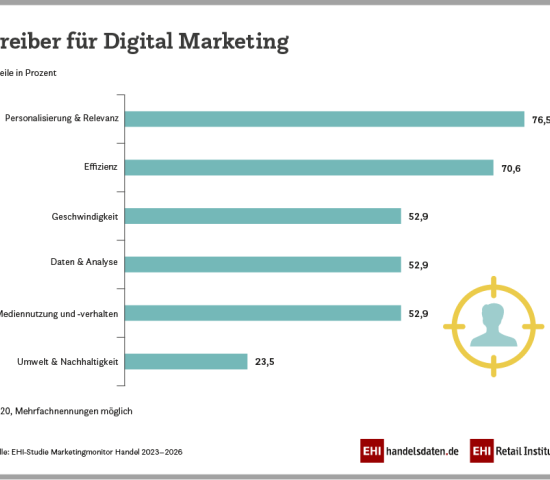 Die EHI-Studie „Marketingmonitor Handel 2023-2026“ identifiziert das Thema Künstliche Intelligenz als zentralen Trend im Handel – und die Digitalisierung als eine entscheidende Voraussetzung. Zum Papierprospekt gibt es bereits zahlreiche digitale Alternativen wie Apps, digitale Prospektportale, Newsletter und Social Media. „Es gibt unterschiedliche Treiber für Digital Marketing“, erläutert Marlene Lohmann, EHI-Marketingexpertin und Autorin der Studie: „Das Marketing kann durch die digitalen Alternativen viel individueller und somit effizienter auf den einzelnen Konsumierenden eingehen.“