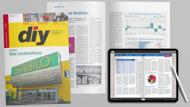 Über gleich zwei vielleicht weniger bekannte Konzepte mit Nahversorgercharakter berichtet das diy-Fachmagazin in seiner Mai-Ausgabe, die jetzt erschienen ist: Die Eröffnung eines neuen Stabilo-Marktes in Lauda-Königshofen bot die Gelegenheit zu einem Gespräch mit Geschäftsführer Ulrich Abendschein, und die NBB-Vertriebslinie Bauaktiv hat in Ichenhausen einen weiteren Standort eröffnet. Das Ressort Handel fasst in diy 5/2024 außerdem die vom BHB vorgelegten Branchenzahlen 2023 zusammen, und Gastautor Jürgen Schröcker, ehemaliger Marketing-Chef von Hornbach, formuliert neue Impulse für die Branche. Aus Österreich gibt es einen Bericht über eine Studie von Let’s do it über die Heimwerker und ihre Anforderungen.