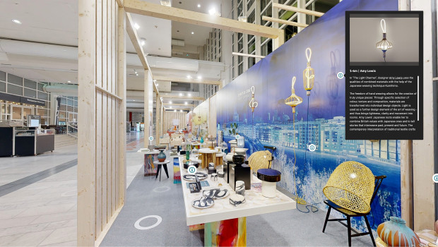 So können Interessierte in dem Ausstellungsareal virtuell umhergehen, näher an Objekte heranzoomen und die Dekorationsobjekte von allen Seiten begutachten. Darüber hinaus geben eingebettete Info-Tags zusätzliche Informationen zu den Ausstellungsprodukten und verlinken direkt zum Ausstellerprofil, um dort zu ordern.