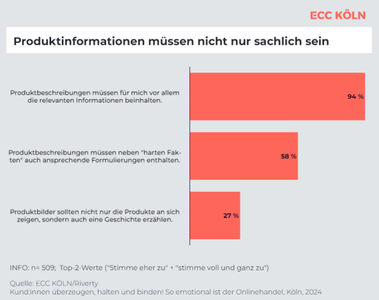 Um sich im E-Commerce einen Wettbewerbsvorteil zu verschaffen, ist eine emotionale Ansprache essenziell, wie eine neue Studie des ECC Köln in Zusammenarbeit mit Riverty zeigt. Visuelle Aspekte in Form von ansprechenden Produktbildern (42 Prozent) stehen hierbei an erster Stelle − vor allem für jüngere Konsumentinnen und Konsumenten. 54 Prozent der 18- bis 29-Jährigen geben an, dass gute Produktbilder bei ihrer letzten Onlinebestellung ausschlaggebend für den Kauf waren. 35 Prozent der jungen Kunden wechseln vor dem Kauf in einem Shop die Informationsquelle, um sich (weitere) Produktbilder oder -videos anzuschauen.