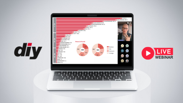 Anmeldung ist noch möglich: Heute um 14:00 Uhr findet das Webinar über die aktuelle Statistik Baumarkt + Garten statt, das der Dähne Verlag mit dem diy-Fachmagazin anbietet. Unter dem Titel „Von Wachstum bis Wandel: Branchen-Insights für Baumarkt & Garten“ fasst Statistik-Fachmann Michael Greiner die wesentlichen Fakten der Ausgabe 2025 zu Umsätzen und Marktanteilen der deutschen Baumarktbetreiber (Stand: 31. Dezember 2024) zusammen und analysiert die sich abzeichnenden Trends. Dabei geht es unter anderem darum, dass die Baumarktgruppen zuletzt im Inland Umsätze verloren haben und nur im Ausland gewachsen sind und dass sich das Gartengeschäft überdurchschnittlich stark, der Onlinehandel aber in Richtung Normalmaß entwickelt hat.