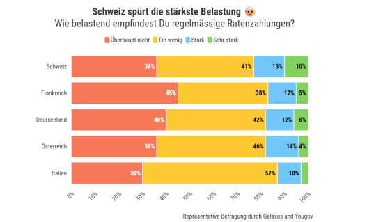 23 Prozent der Schweizerinnen und Schweizer verspüren starke oder sehr starke Belastung bei regelmäßigen Ratenzahlungen – der höchste Wert im Vergleich zu anderen Ländern.