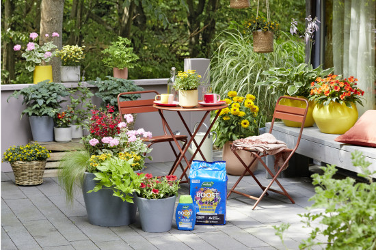 Im Duo unschlagbar: Erste Wahl für die Pflege im System ist der Boost Universal Flüssigdünger. Mit der Plantsense-Technologie gewährleistet er die Nährstoffversorgung der Pflanzen und reicht für bis zu 450 Liter Gießwasser. Der Dünger fördert ein kräftiges Wachstum – mit bis zu viermal mehr Blüten, Gemüse und Früchten (im Vergleich zu ungedüngten Pflanzen).